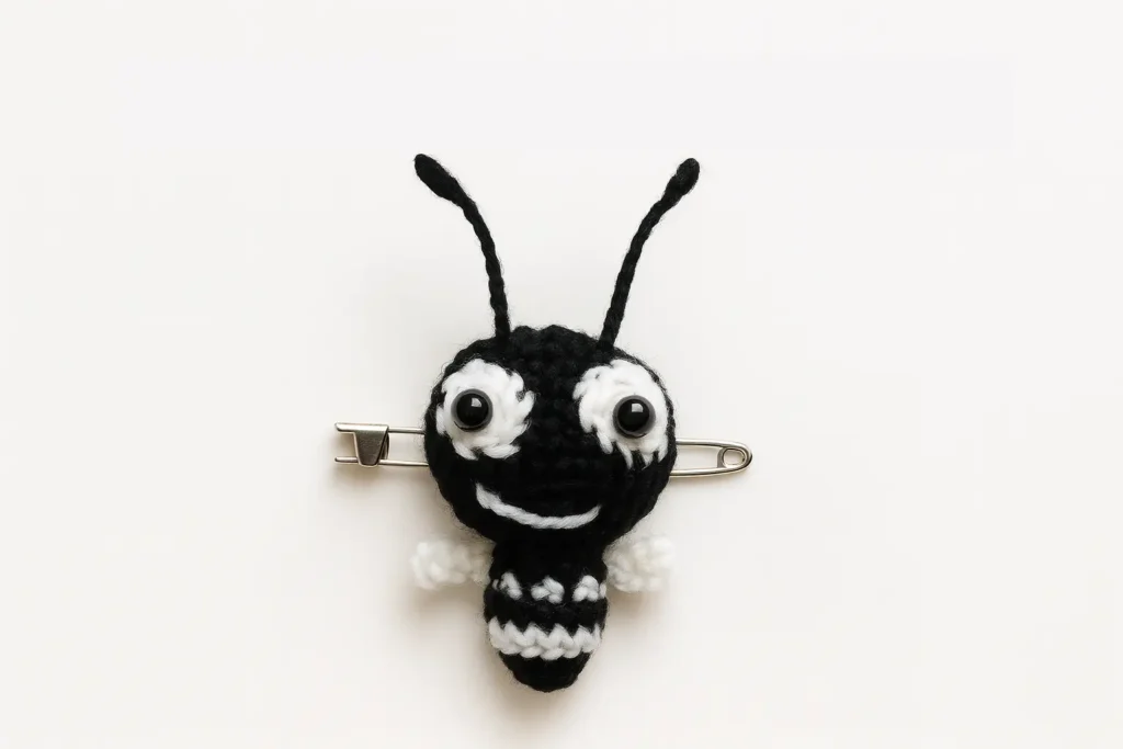 Creates a tiny teardrop body with a crisp white stripe in the center. Keep your tension snug so your Crochet Ant Easy Amigurumi Keychain stays firm and round.