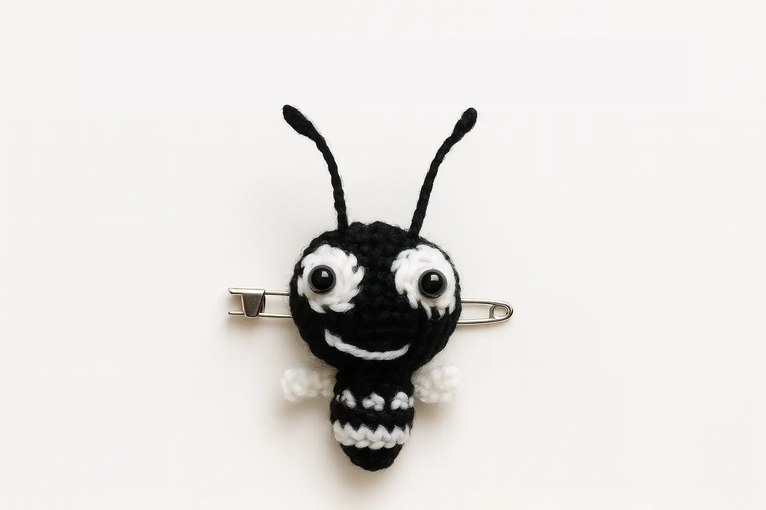 Give your Crochet Ant Easy Amigurumi Keychain that playful, cartoony look with one large white eye and one tiny eye that overlaps slightly.