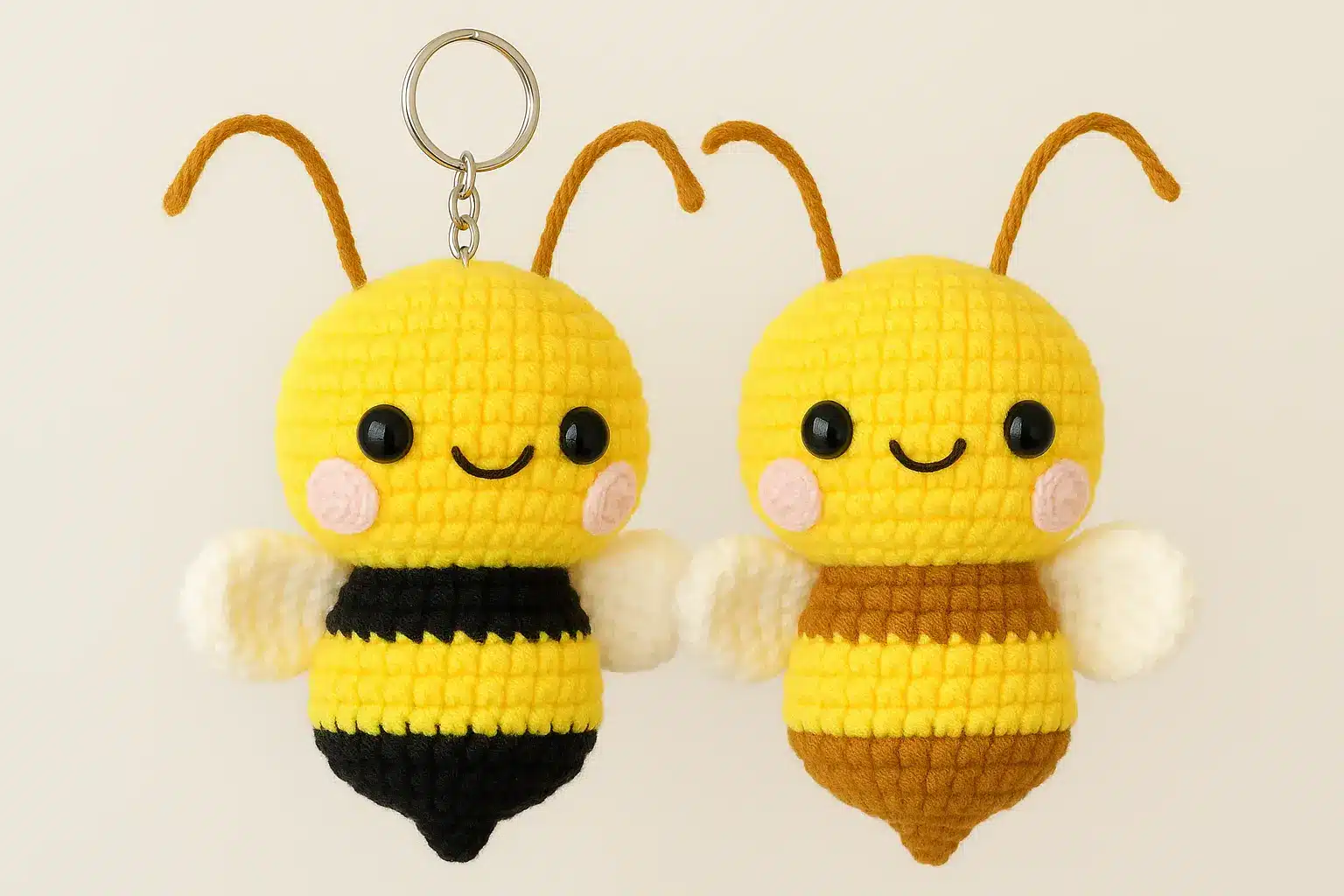 Crochet bees have become one of the most popular amigurumi projects in recent years, and it’s easy to see why! They’re cute, beginner-friendly, and quick to make. Whether you want a buzzing crochet bee keychain 🐝 for your bag or a larger plush version to cuddle, this pattern is the perfect starting point.