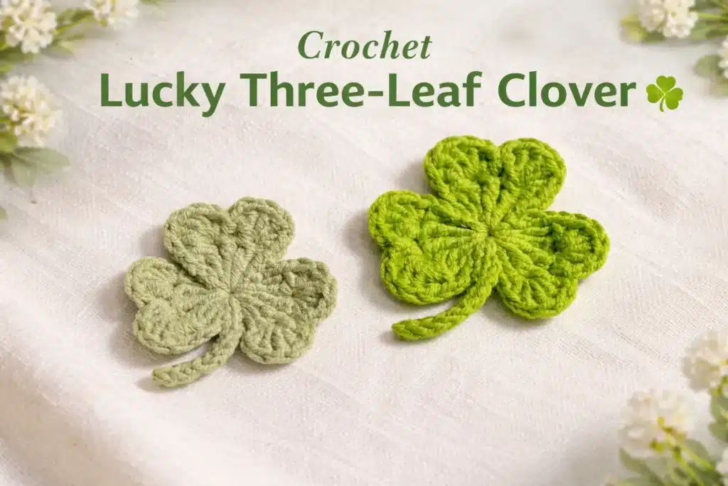 If you want a quick, cute, and beginner-friendly project, this Lucky Three-Leaf Clover Crochet Pattern is a lovely one to make. It works up fast, uses only a small amount of yarn, and can be used in so many ways. You can turn this little clover into a hair clip, sew it onto a bag, add it to a spring headband, or use it as a sweet applique for other crochet projects.